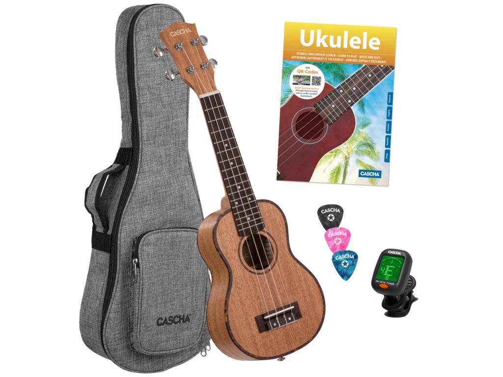 Sopránové ukulele Cascha s označením Premium je cenově dostupný nástroj, který potěší děti i dospělé. Spolu s ukulele získáte i praktický polstrovaný obal (tloušťka polstrování 5 mm) a tři trsátka, takže můžete okamžitě vyrazit za zábavou k vodě, do skal, k moři… všude, kde to žije.